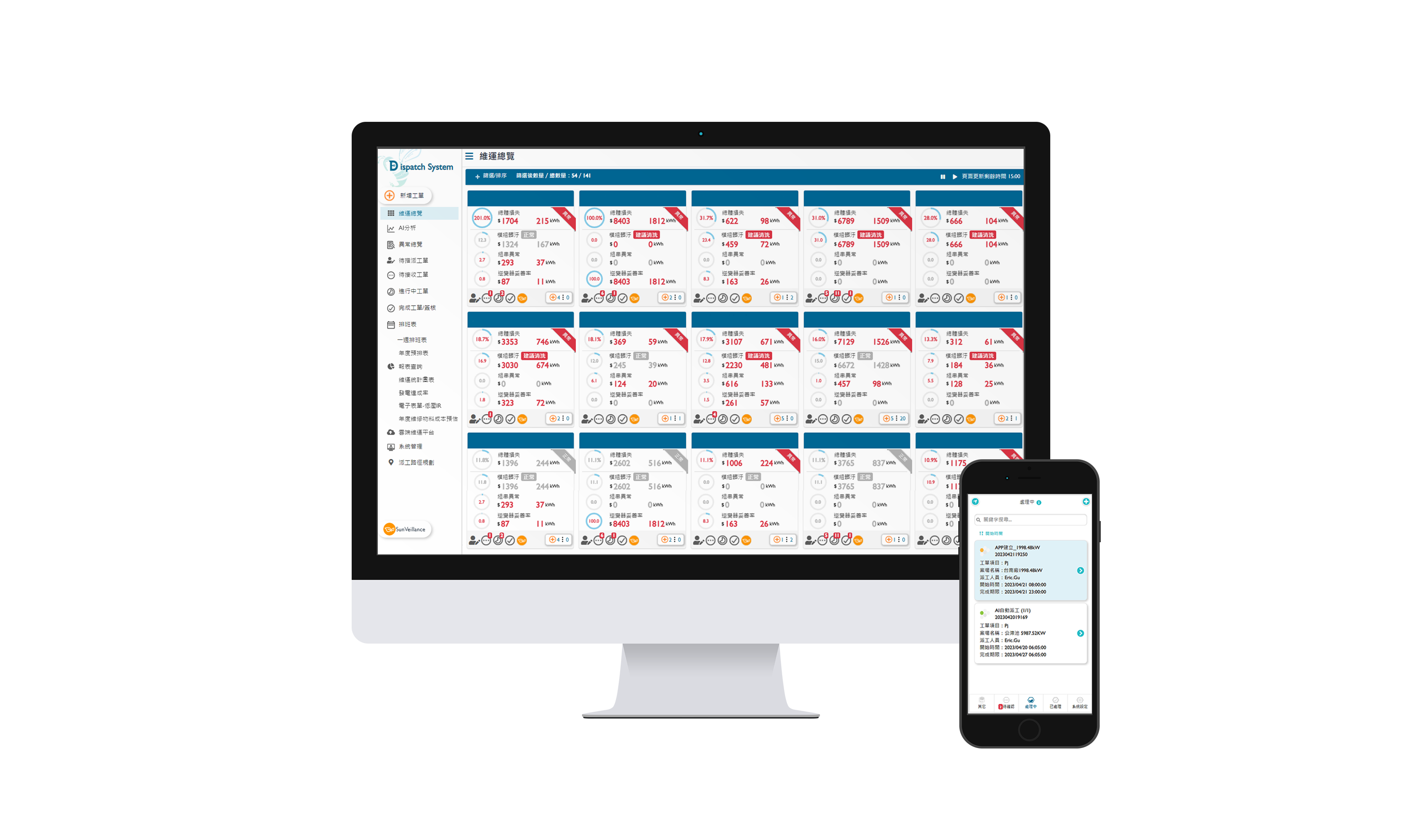 AUO SunVeillance, a smart cloud PV monitoring solution, is an integrated system combining data recorder and cloud monitoring software. Through collaborating with global cybersecurity companies, this solution features a complete and reliable cloud database, easy installation, and compatibility with the main inverter, electric meter, analog-to-digital converter, and weather sensor to allow customers to monitor energy generation and operation of solar plants remotely in real-time to ensure the optimal performance.